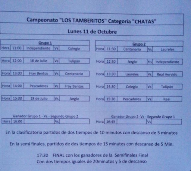 El próximo lunes 11 de octubre se realizará en el local «Los Tamberitos» un campeonato de fútbol del cual participarán los niños de generación 2013 de todos los clubes, quienes pertenecen a la categoría «chatas».