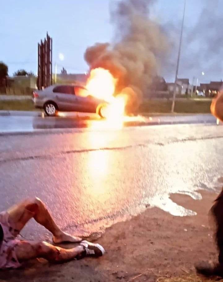 Luego del accidente, la moto tomó fuego y se propagó al automóvil, según confirmaron fuentes policiales.