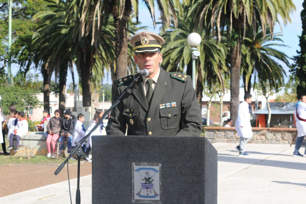 Las palabras alusivas a la fecha estuvieron a cargo del Jefe del Batallón Rincón de Infantería Mec. Nº 9, Tte. Coronel Cristian Rosso, quien en su alocución repasó la secuencia de los hechos de aquel entonces e invitó a la ciudadanía a seguir cultivando a diario el amor a la patria, a la democracia, a las instituciones, a los valores intrínsecos del ser humano y a la familia.