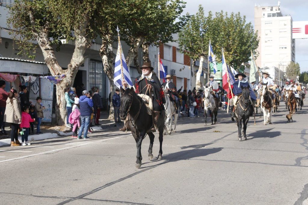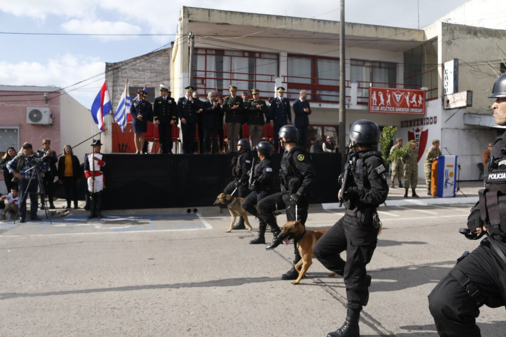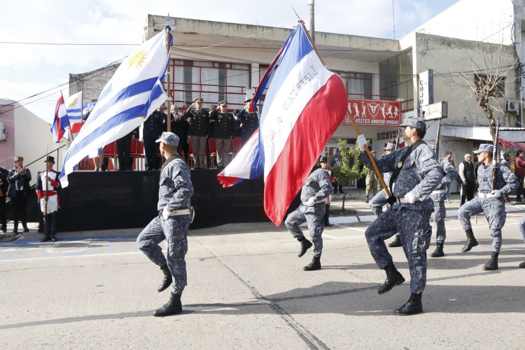 El palco oficial con las autoridades se situó en 18 de Julio, donde se pudo apreciar el desfile cívico militar que se desplegó desde Plaza Artigas a Plaza Constitución.