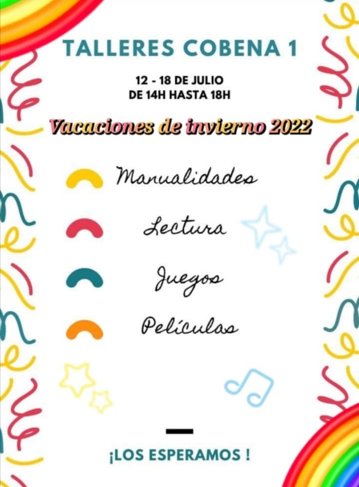 Por otra parte, en el Centro Cobena 1 se realizan actividades en el marco de las vacaciones de invierno, las cuales comenzaron este martes 12 de julio y se extenderán hasta el lunes 18, de 14 a 18hs.