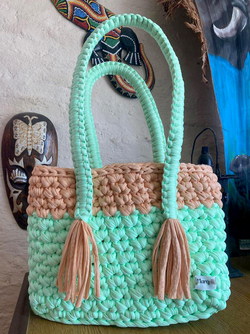 Creaciones Marga surge por el interés de Sandra, la responsable del emprendimiento de realizar algo como entretenimiento, si bien teje desde niña, nunca pensó que iba a vender sus creaciones. “Hace un tiempo había realizado carteras, pero las había hecho en lana, el tema de la lana es que no quedan tan armadas, después que conocí el trapillo comencé a tejer en trapillo. Hace tres meses que empecé con esto. Probé, hice dos o tres y me gustó como quedó, es algo que me gusta”, explicó Sandra a El Rionegrense.