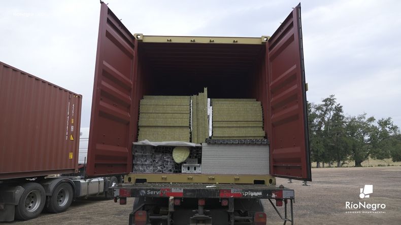 Cuarenta casas prefabricadas, donadas por el gobierno chino, arribaron a los galpones del ex frigorífico Anglo en Río Negro. Los contenedores con las unidades desarmadas serán ensamblados y formarán parte del programa “Avanzar”, específicamente del proyecto “Lotes con Servicios”. Cada módulo incluye aberturas, piso, cielorraso e instalación eléctrica, aunque la Dirección General de Vivienda de la Intendencia de Río Negro planifica añadir baños y cocinas.