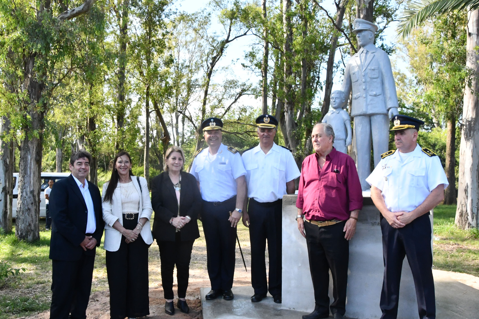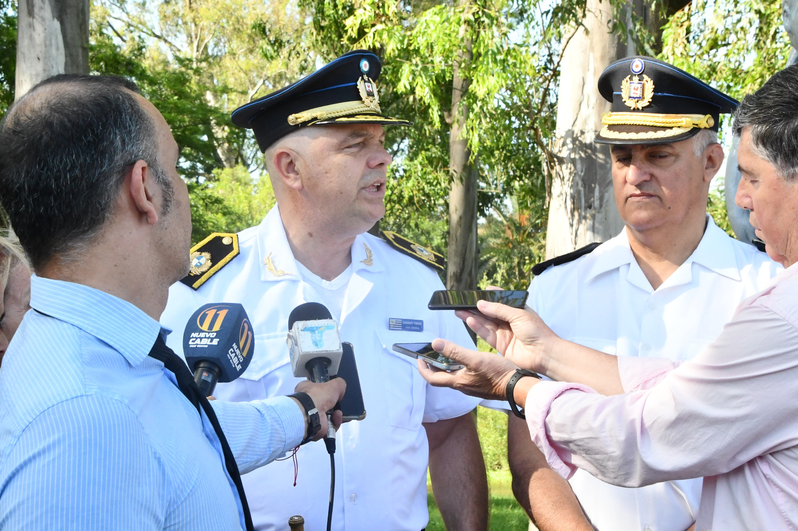 En la primera parte de la jornada, se develó una obra simbólica del escultor SOM ® Juan Despaux, emplazada en camino Lynch y calle Brasil, como un tributo permanente a la labor de quienes integran la fuerza policial. Posteriormente, las actividades se trasladaron al Teatro de Young, donde autoridades, invitados especiales, efectivos policiales y sus familias se reunieron para escuchar las palabras del jefe Trías.