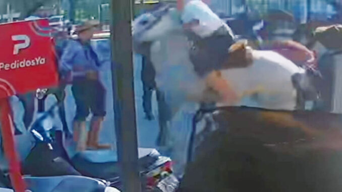 El video de una cámara del lugar muestra que el joven herido, oriundo de la zona de Constancia, se encontraba montado en su caballo mientras discutía con otro hombre que estaba de pie. En medio del intercambio, una tercera persona intervino agrediendo al presunto agresor desde atrás —aparentemente con un rebenque—, momento en el cual este último aprovechó para lanzar un puntazo con un facón que impactó en el costado derecho del jinete.