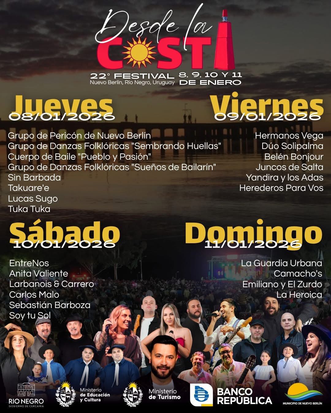 La ciudad se alista para celebrar una nueva edición de su fiesta popular más importante con la llegada de la vigésima segunda edición del Festival Desde la Costa, que se desarrollará del 8 al 11 de enero de 2026 en el tradicional escenario a orillas del río Uruguay.